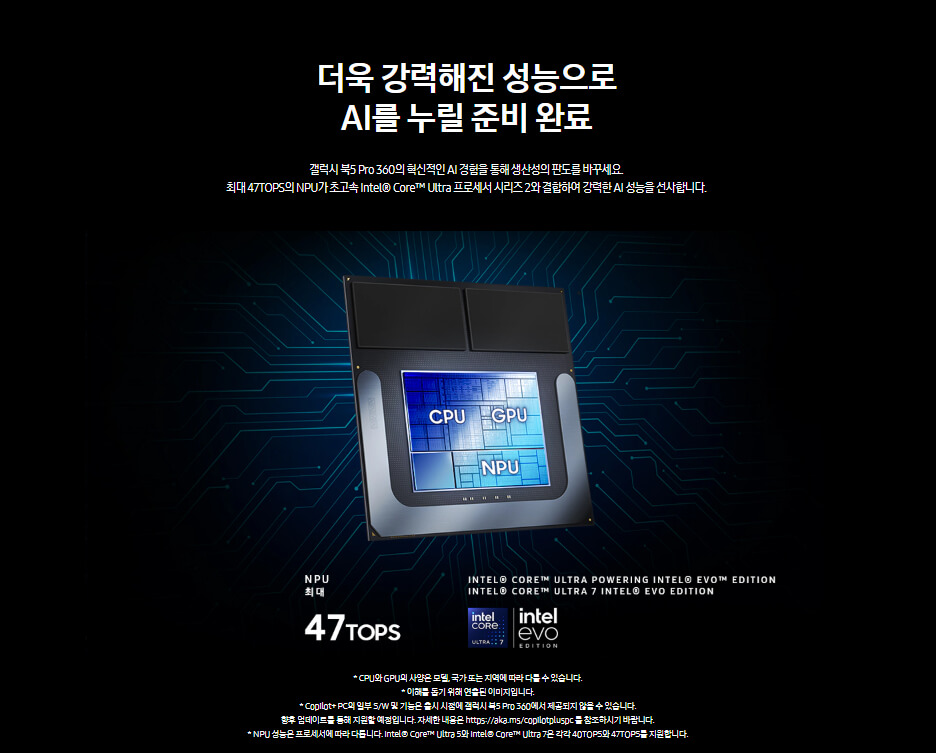 갤럭시 북5 Pro 360 (40.6cm) Core™ Ultra 7 / 1TB NVMe SSD, Copilot+ PC | NT960QHA-KD72G | Samsung 대한민국