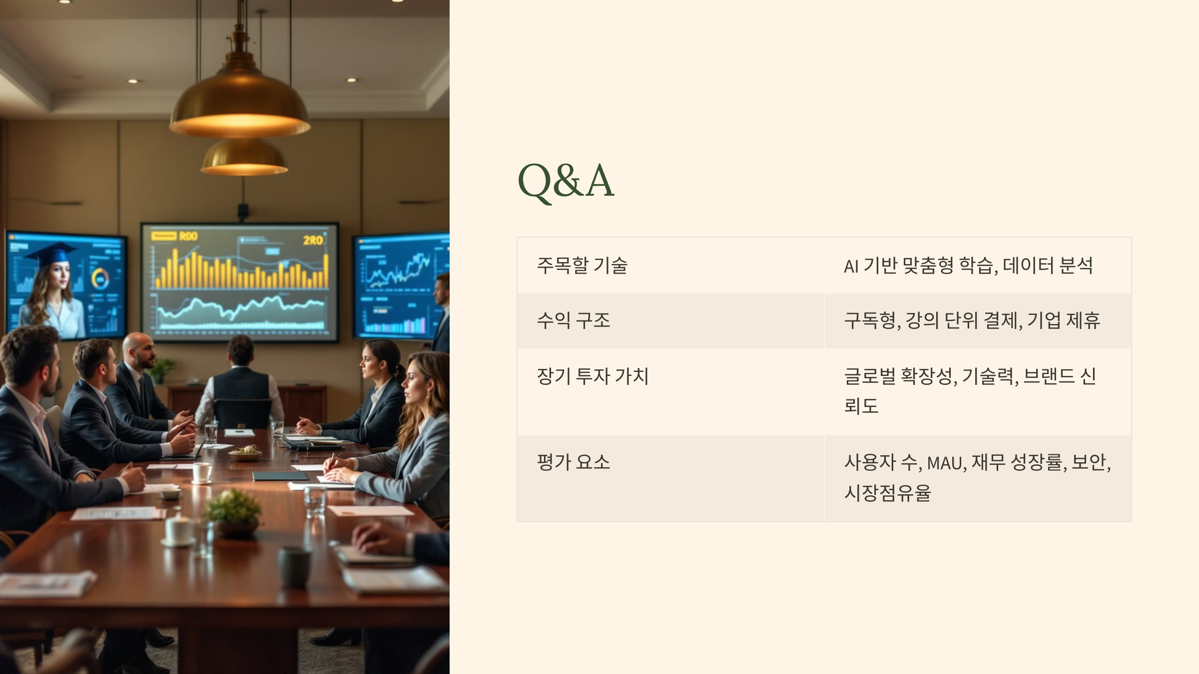 Q1: 온라인 교육 플랫폼 투자 시 가장 주목할 기술은 무엇인가요?