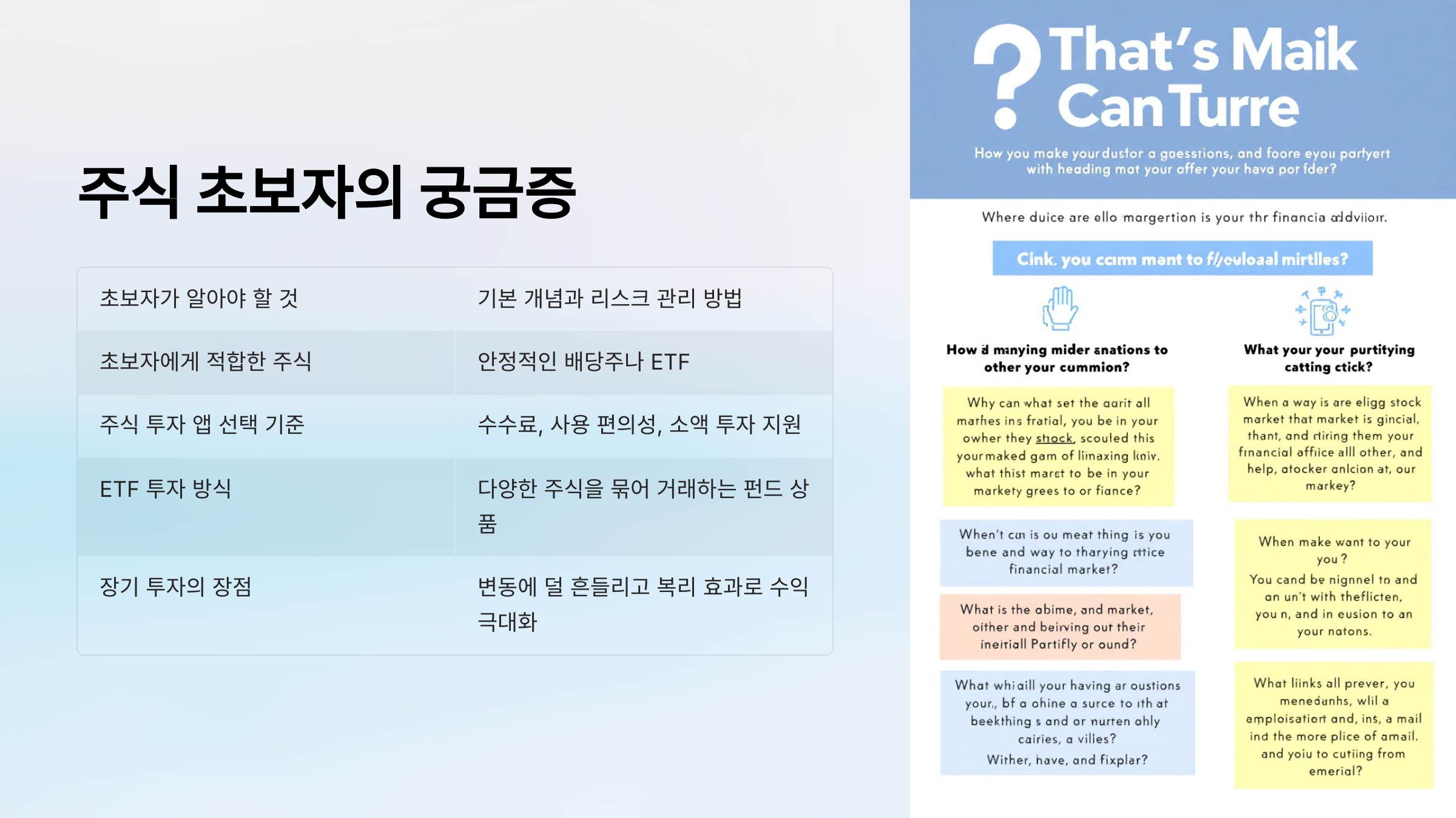 A1: 주식의 기본 개념과 리스크 관리 방법입니다. 이를 이해해야 실제 투자에 대한 불안감을 줄일 수 있습니다.