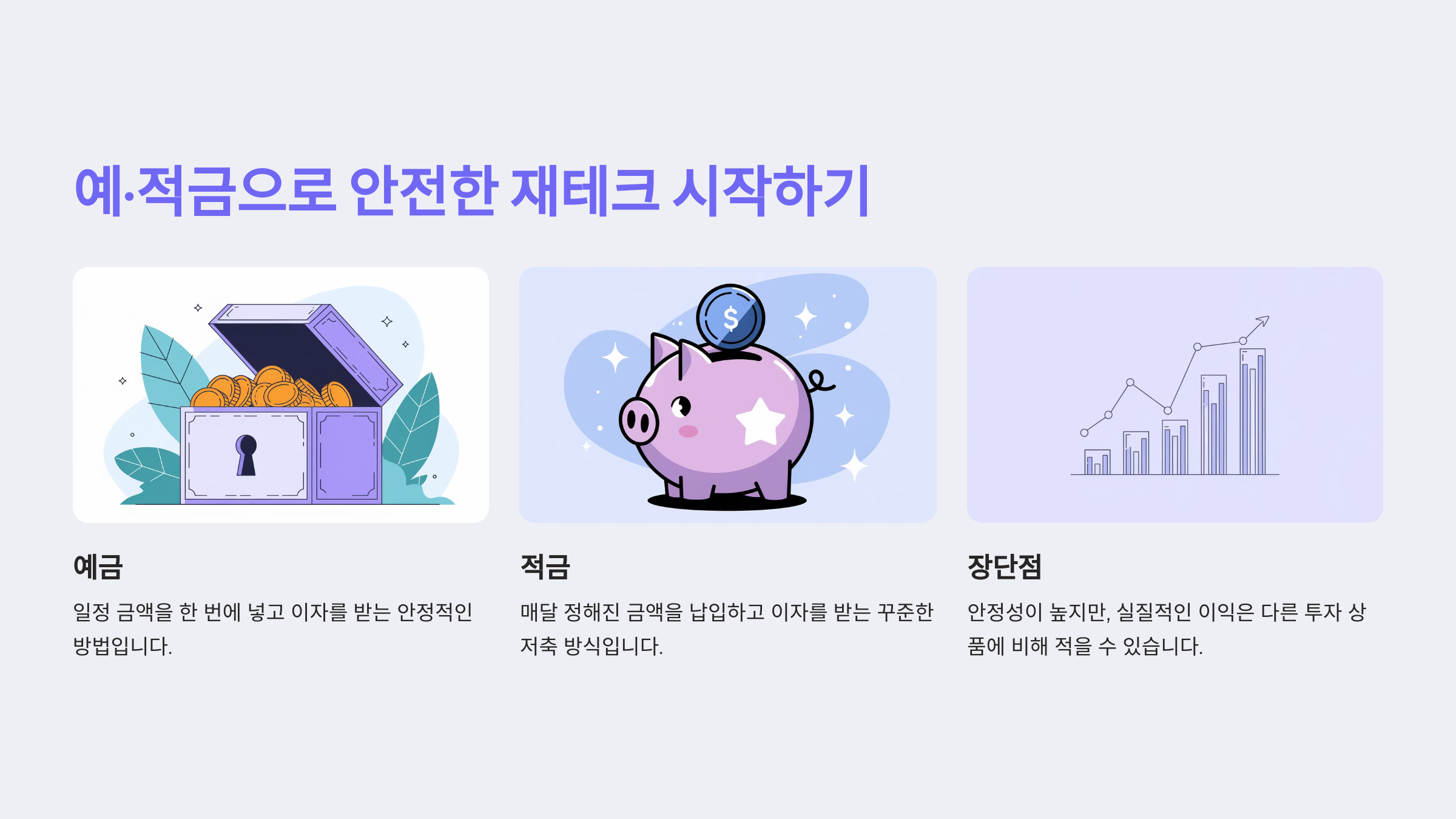 - 단점: 예·적금 금리가 낮아 인플레이션을 고려하면 실질적인 이익이 적을 수 있습니다.