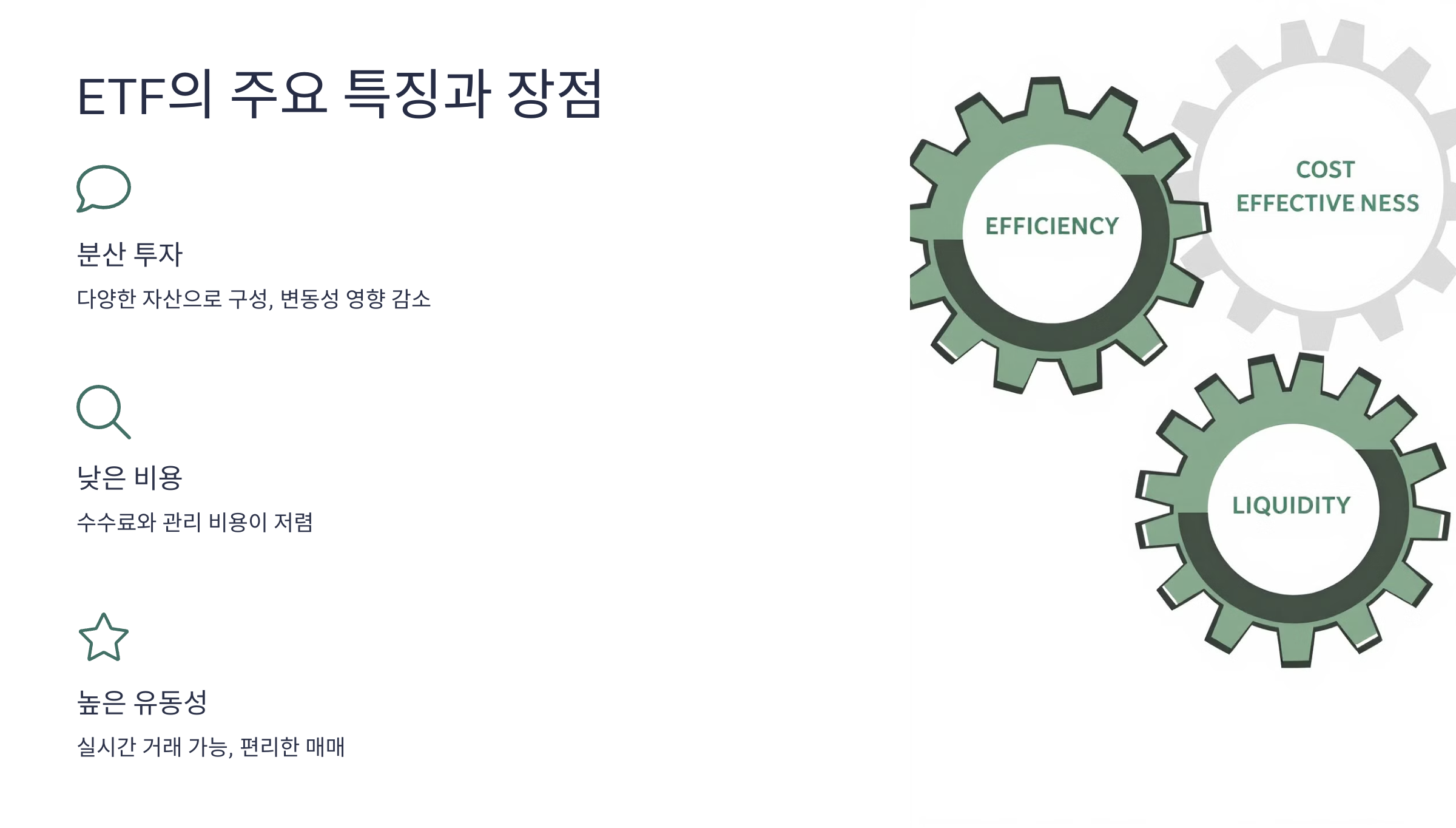 ETF는 일반적으로 수수료가 낮고 관리 비용도 저렴합니다. 이는 장기적으로 투자했을 때 비용 효율성을 높여줍니다.