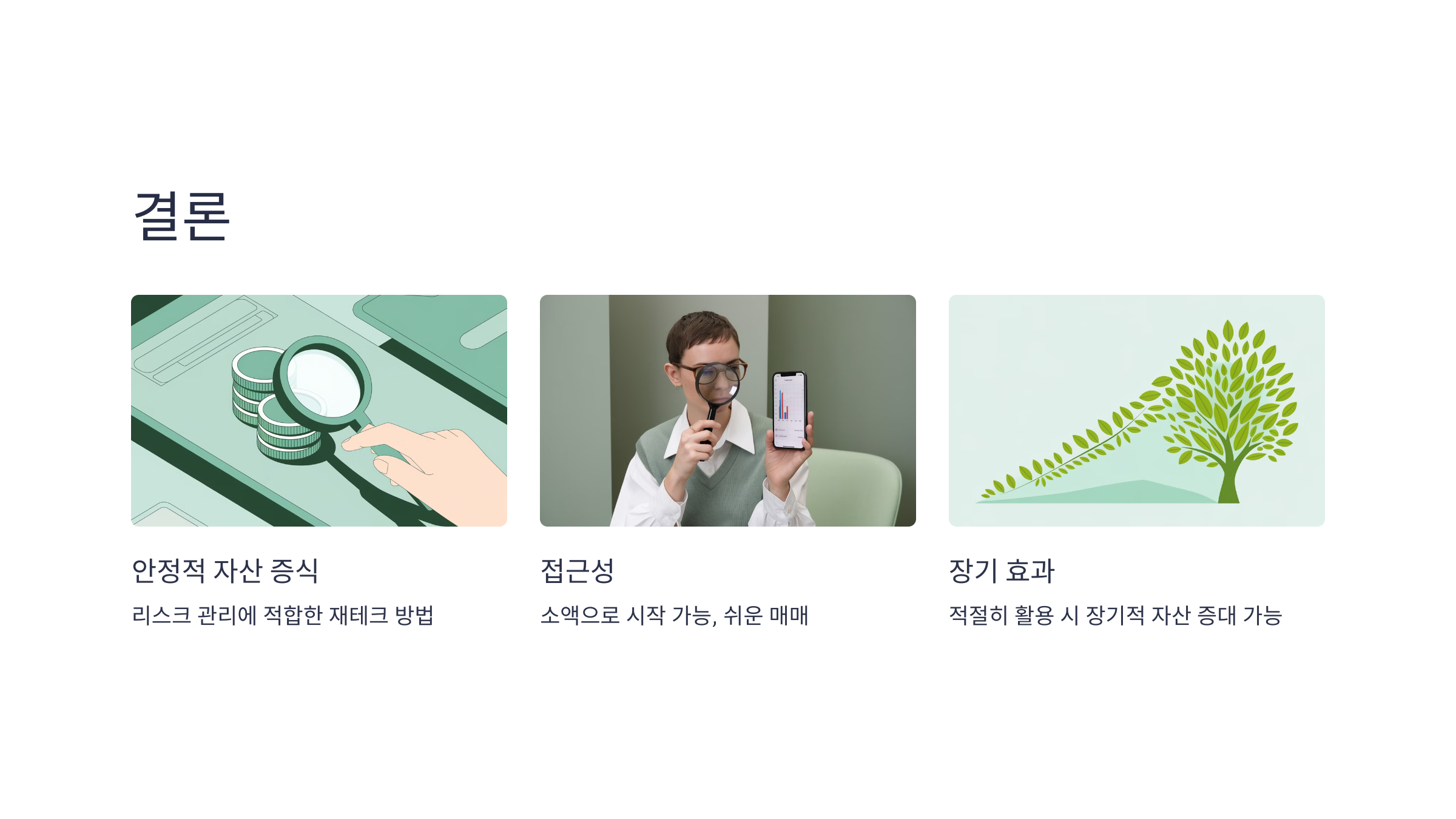 ETF는 안정적인 자산 증식과 리스크 관리가 중요한 투자자에게 적합한 재테크 방법입니다. 초보자도 소액으로 시작할 수 있고, 주식처럼 거래소에서 쉽게 매매할 수 있어 접근성이 뛰어납니다. 다양한 ETF 상품을 이해하고 적절히 활용한다면 장기적인 자산 증대 효과를 누릴 수 있을 것입니다.